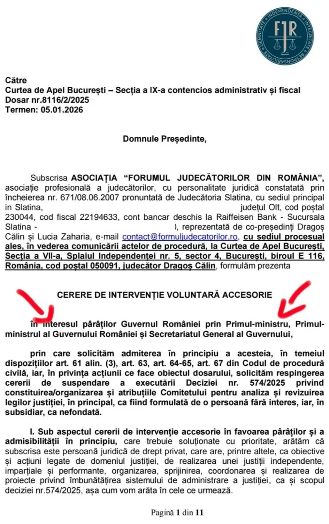 Intervenția FJR nu mai este o pledoarie abstractă pentru independență, ci o susținere concretă a Guvernului într-un litigiu. În loc să critice sau să apere principii, asociația intră în mecanica procesului, legitimând juridic demersul Executivului.
