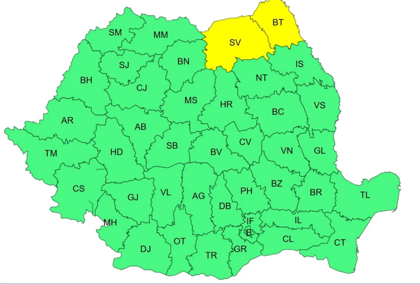 O avertizare Cod galben este în vigoare sâmbătă până la ora 20.00. Conform acesteia, în nordul Moldovei va fi ger și se vor înregistra temperaturi deosebit de scăzute, fiind situate în jurul valorii de -10 grade.