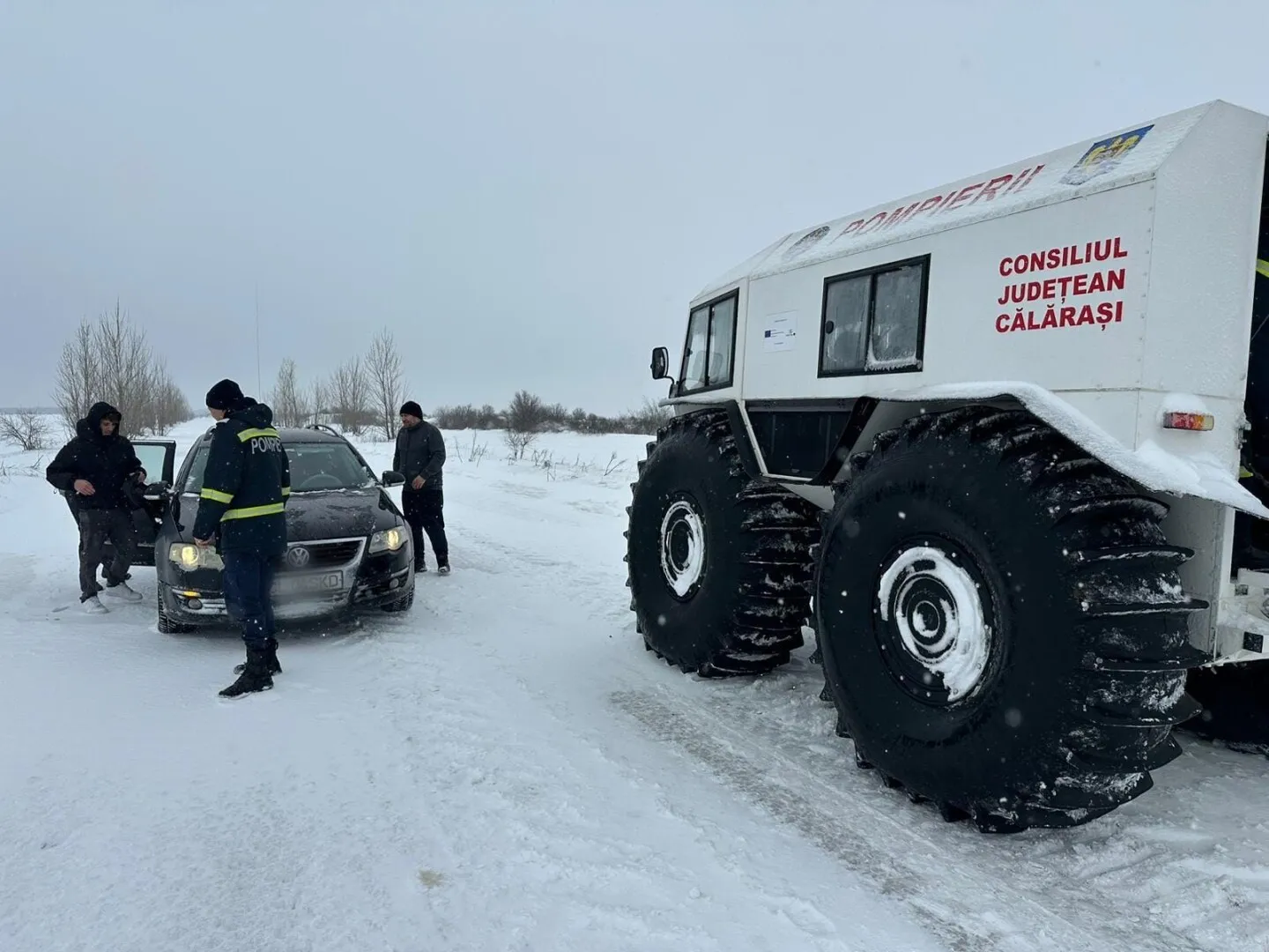 Totodată, în cursul nopții de vineri spre sâmbătă s-a intervenit cu un utilaj pentru deblocarea unui autoturism pe DJ 211C, pe raza localității Tătaru. În mașină se aflau doi adulți și doi copii, care au fost preluați și duși la Primaria comunei Dudești, în vederea cazării.